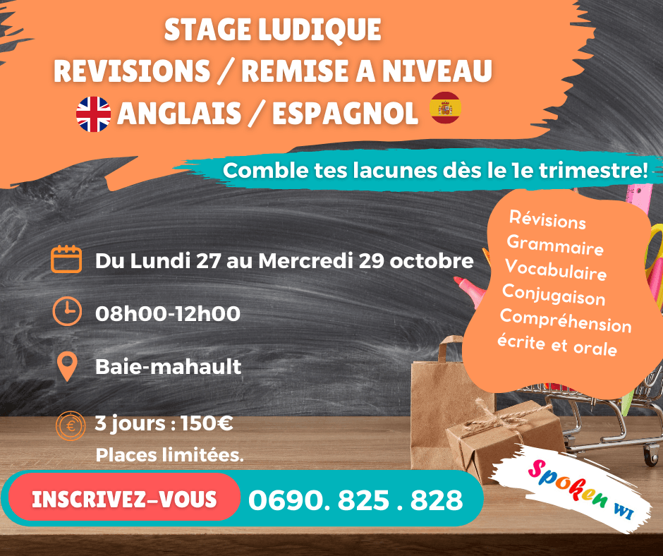 Pour bien démarrer l’année scolaire 2025-2026, nous organisons des stages de pré-rentrée en anglais et en espagnol, destinés aux enfants du primaire et aux collégiens. L’objectif est de réviser en douceur, consolider les bases et prendre de l’avance dans une ambiance ludique et motivante. Laissez vos enfants nous rejoindre pour bien préparer leur rentrée scolaire !